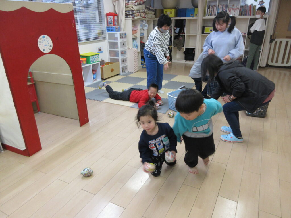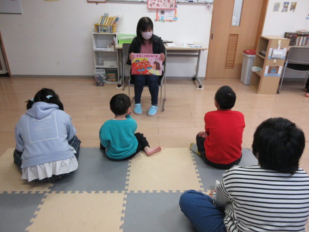 由来の紙芝居をみたり、お団子運びゲームを楽しみました。🎎