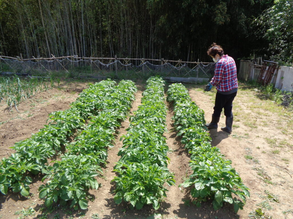 農作業・園芸作業があり、中庭や畑で作物や花を植えて育てています。